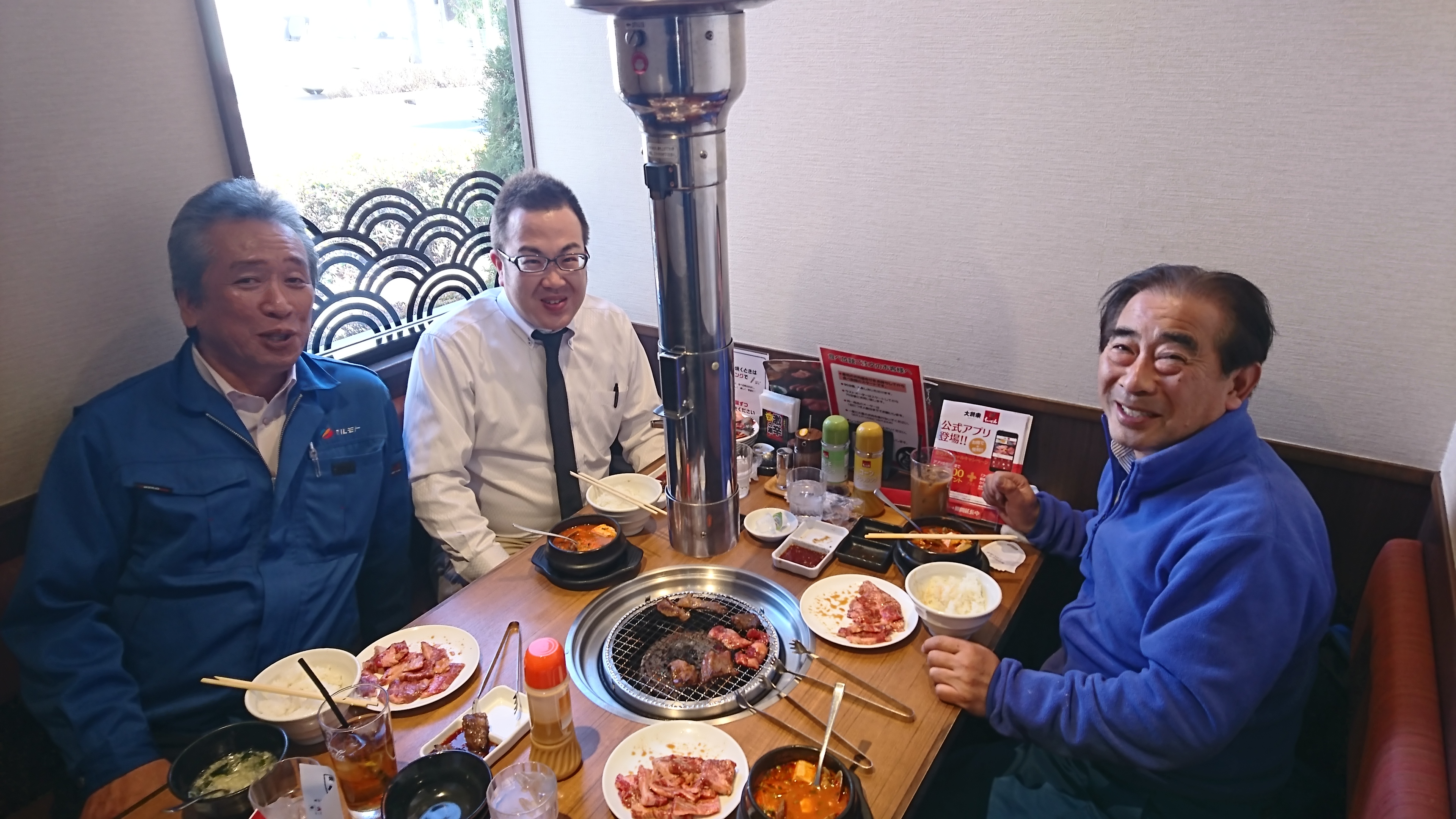 新人のK君笑顔最高!越谷営業所より医薬品配送担当です。左側部長、右側常務いい笑顔ですね。