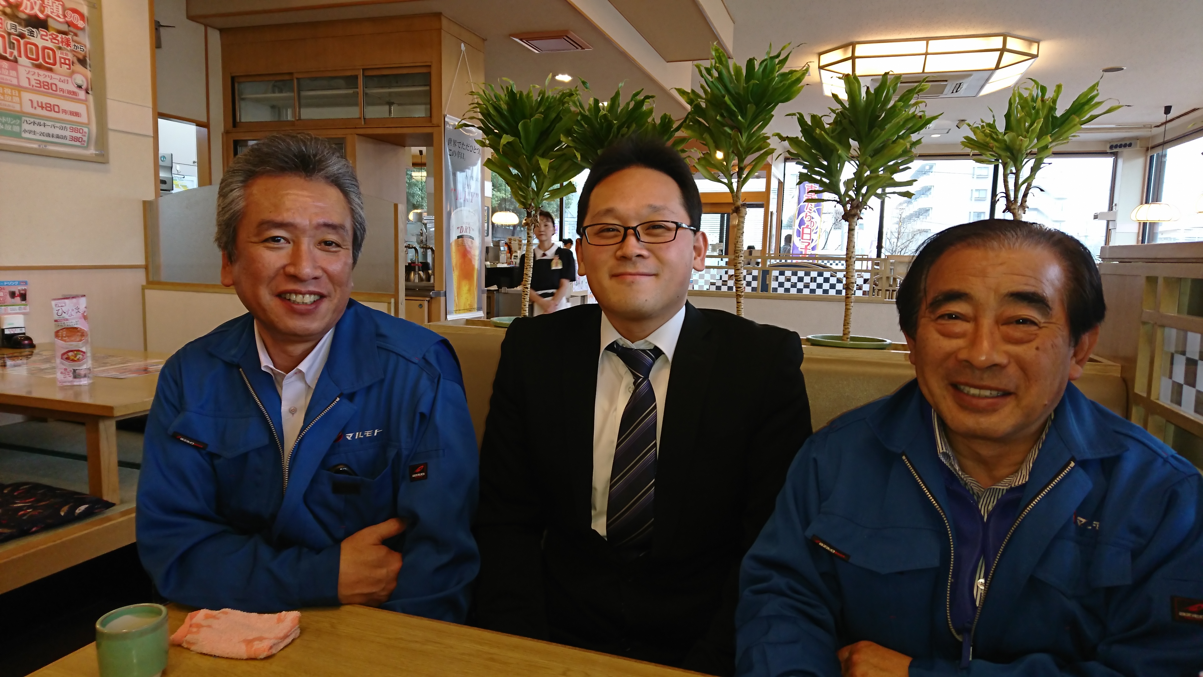 二ツ宮営業所勤務左から二人目Fさん三人目Hさん焼肉食べて良い笑顔ですね