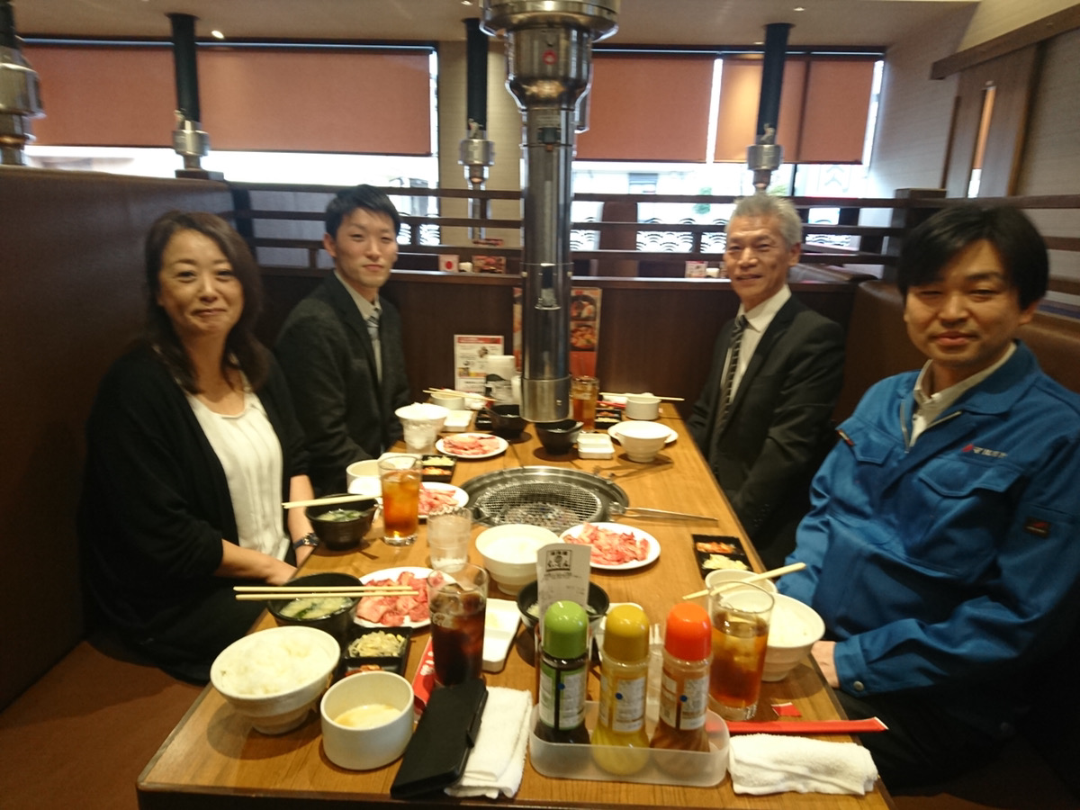 3課医薬品配送担当、新人のTさん、Uさん、Hさんそして3課係長のTさん、焼肉のお味はどうでしたか? 安全運転で宜しくお願いします。