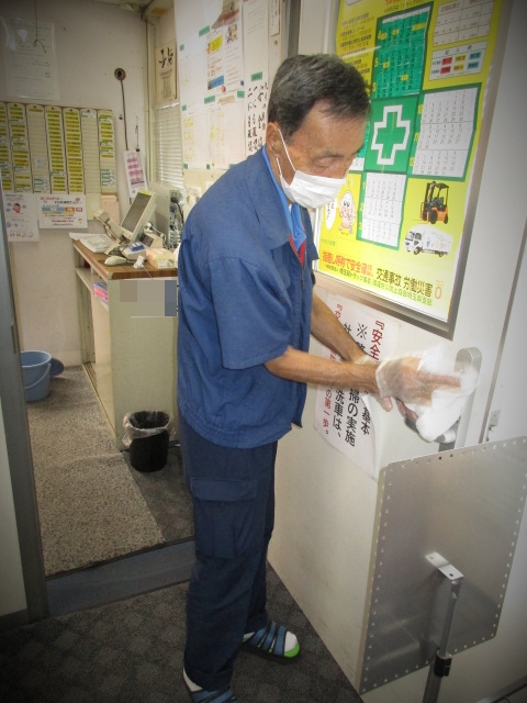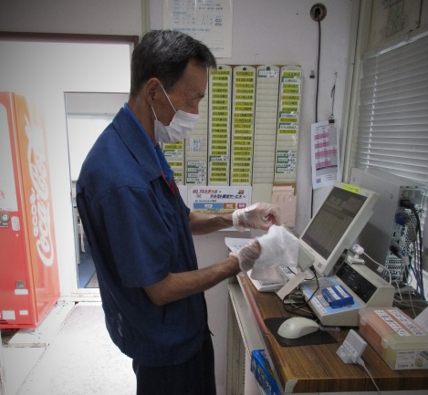 入念に消毒作業をしている配車Kさん🚚は、コロナをきっけかに、禁煙に成功したそうです✨