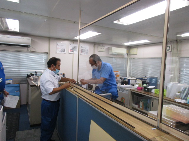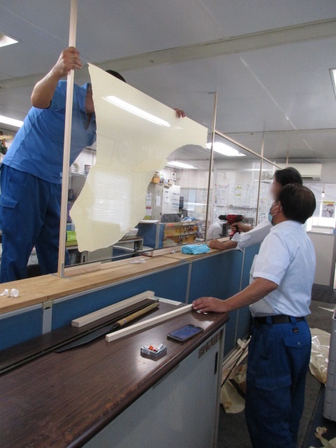 はじめは既製品で対応をしておりましたが、高身長ドライバーさんが多くて アクリル板から顔を覗かせてしまうため 高さのあるアクリル板を購入し、製作中です