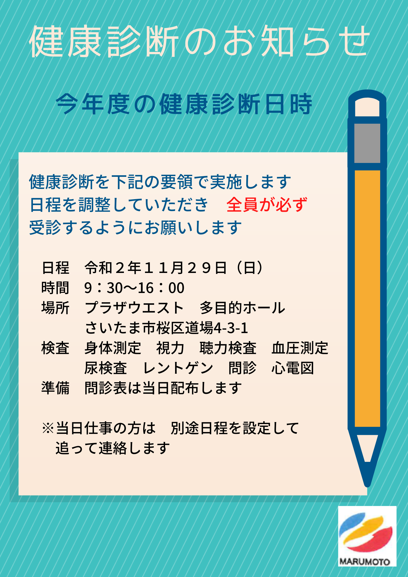 💊健康診断のお知らせ💉