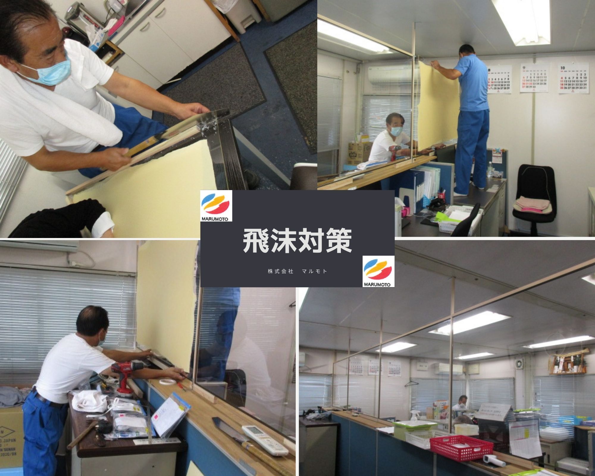 高さ90㎝横1530㎝のアクリル板4枚を ブロンズレールと木枠を取り付け 机5台分隙間なく設置しました