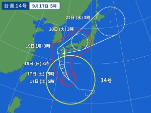 週末から火曜日にかけて台風14号の影響が出そうです。