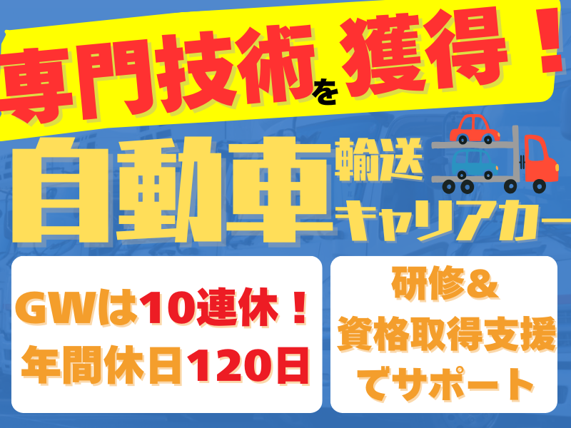 自動車という重要な荷物を、専門的な技術で運ぶので、安定して成長できるお仕事です!